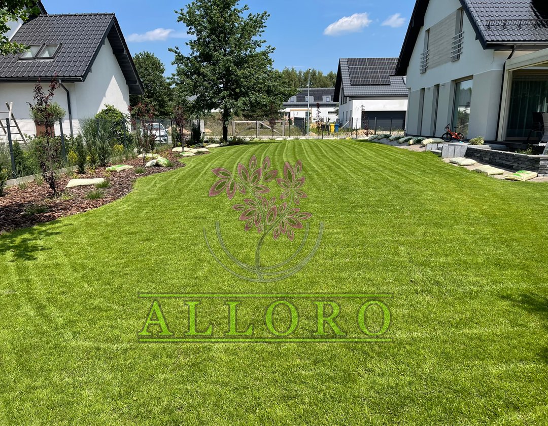 "ALLORO zakładanie trawników to Twój zaufany partner w tworzeniu i pielęgnacji wymarzonego ogrodu. Specjalizujemy się w zakładaniu trawników z siewu i rolki, oferując kompleksowe usługi od przygotowania podłoża, poprzez siew lub rozkładanie trawy, aż po pierwsze koszenia i nawożenie. Dodatkowo projektujemy i budujemy oczka wodne, instalujemy systemy nawadniania trawników oraz oferujemy profesjonalną pielęgnację trawników, w tym wertykulację, aerację i nawożenie. Nasze doświadczenie i pasja gwarantują wysoką jakość usług i zadowolenie Klienta. Z ALLORO Twój ogród będzie pięknym i zadbanym miejscem. Zapraszamy do kontaktu!"